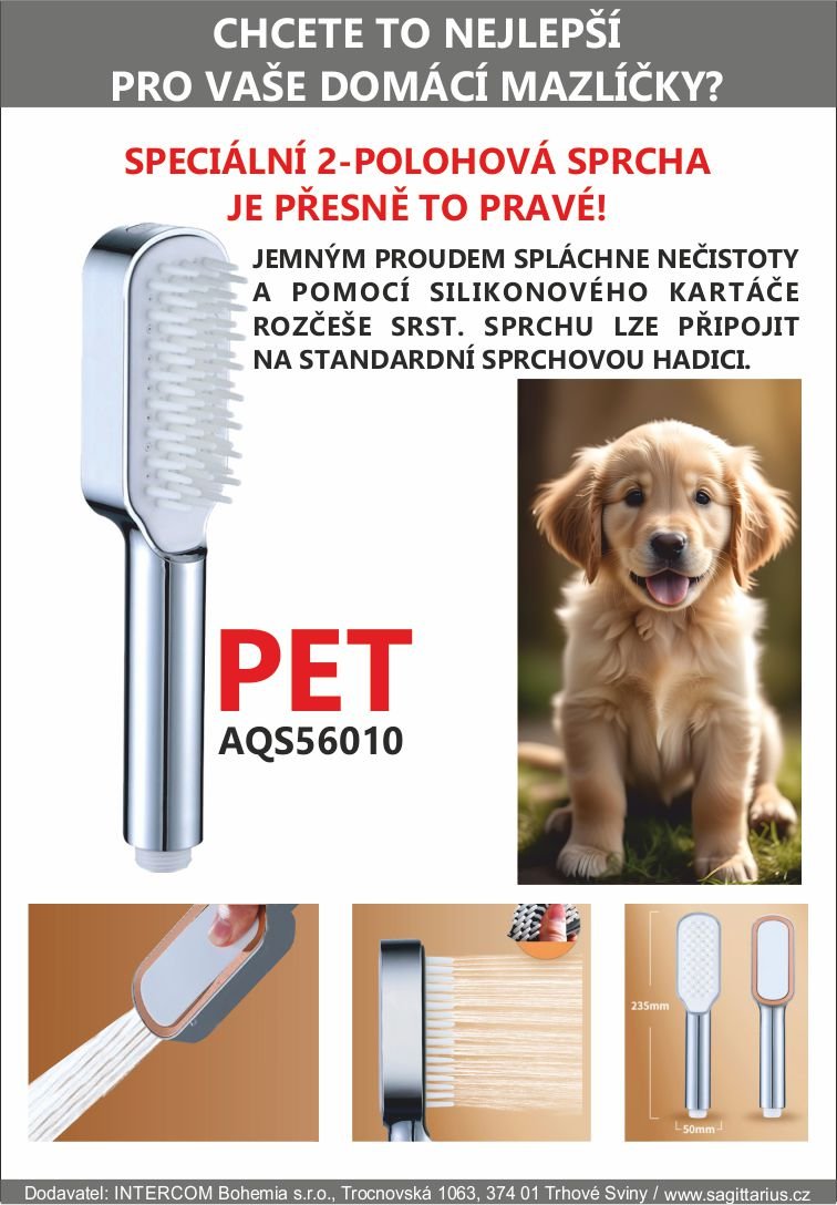 PET, 2-polohová ruční sprcha pro hygienu domácích zvířat, chrom