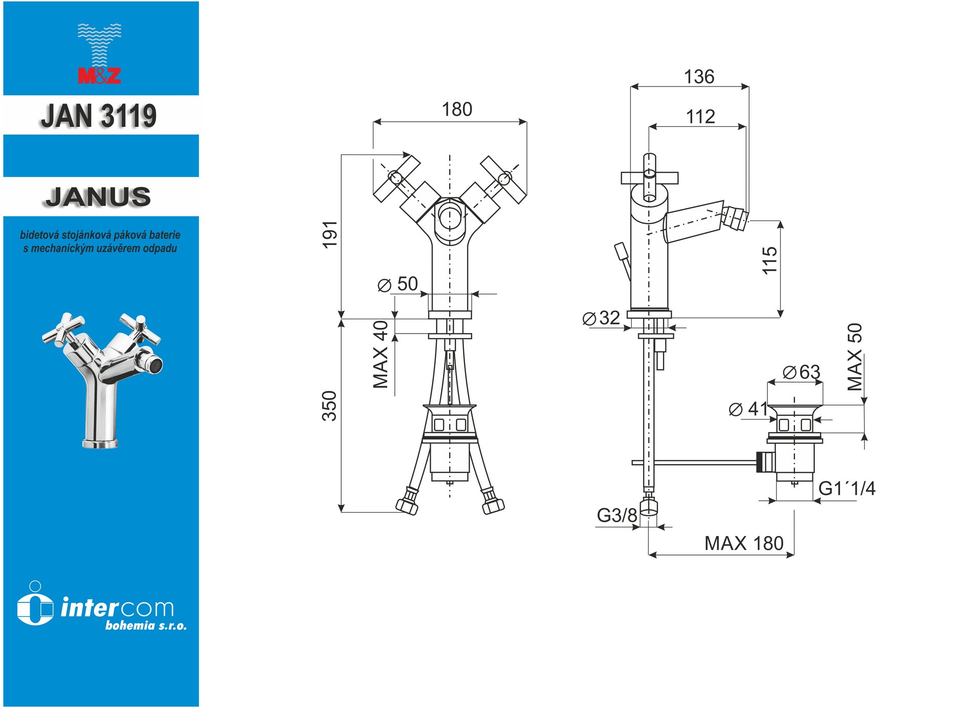 Bidetová stojánková s uzávěrem sifonu, chrom, JANUS