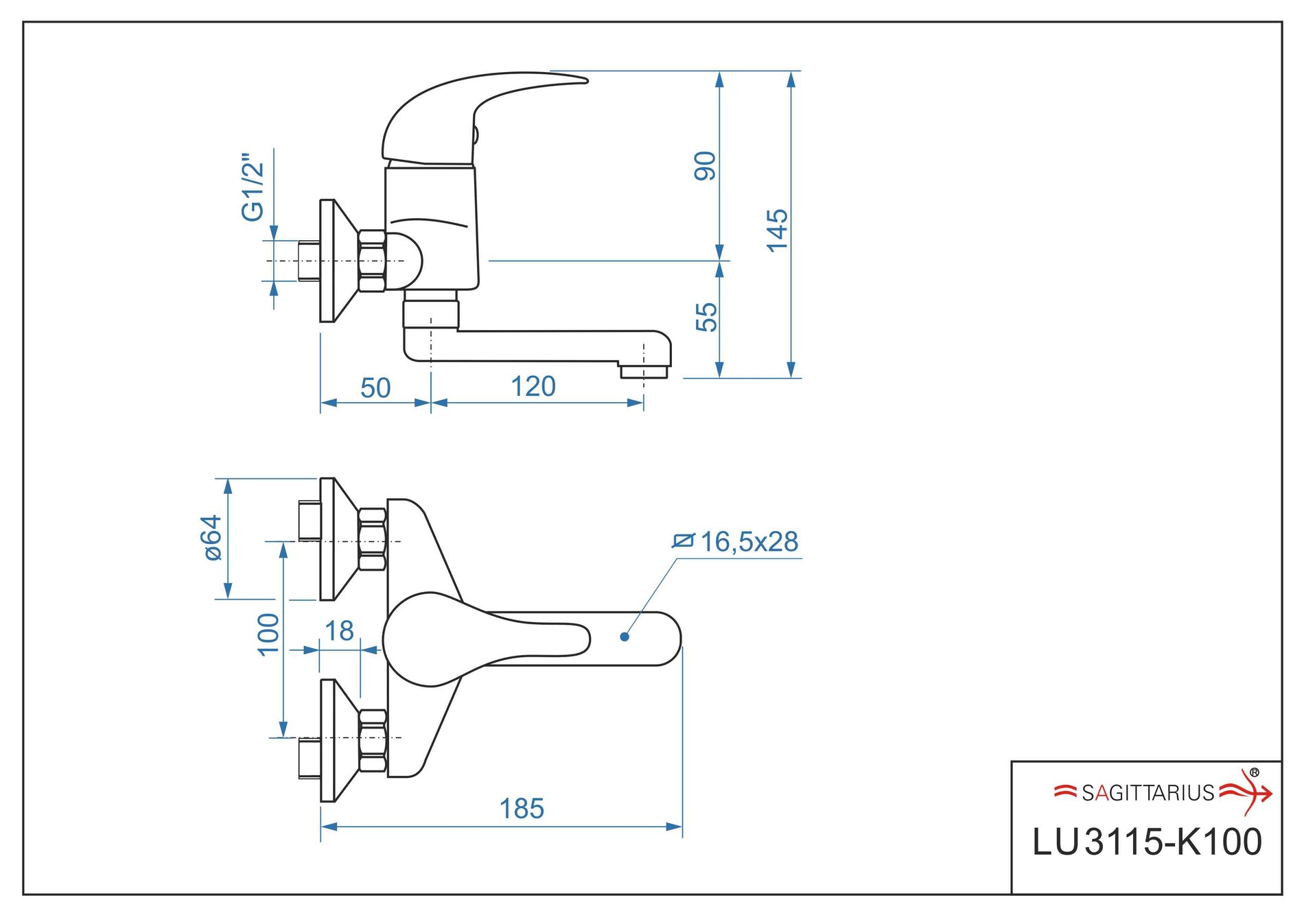 Dřezová stěnová baterie LUNA s ramínkem „K“ (ramínko 120mm) – rozteč 100 mm