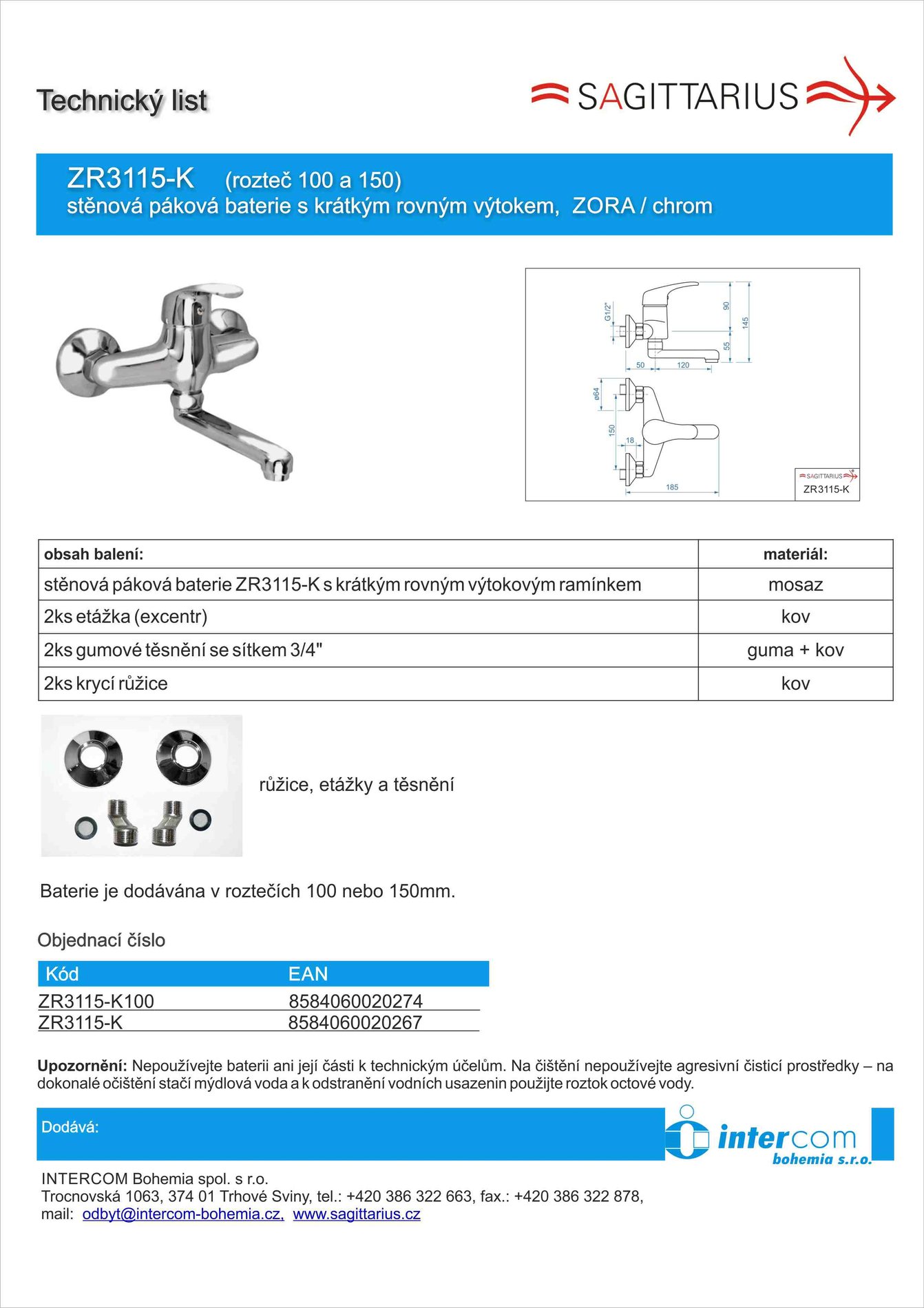 Technický list dodavateleRozměrový výkresProhlášení o shoděPokyny k montáži a servisu vodovodních baterií Sagittarius