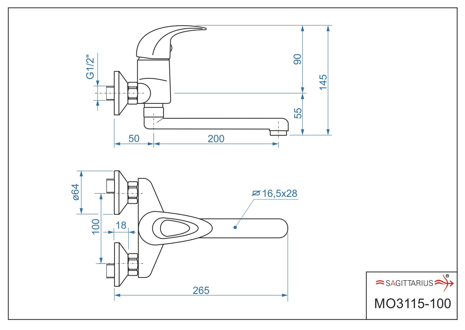 Dřezová stěnová baterie MOON – rozteč 100 mm