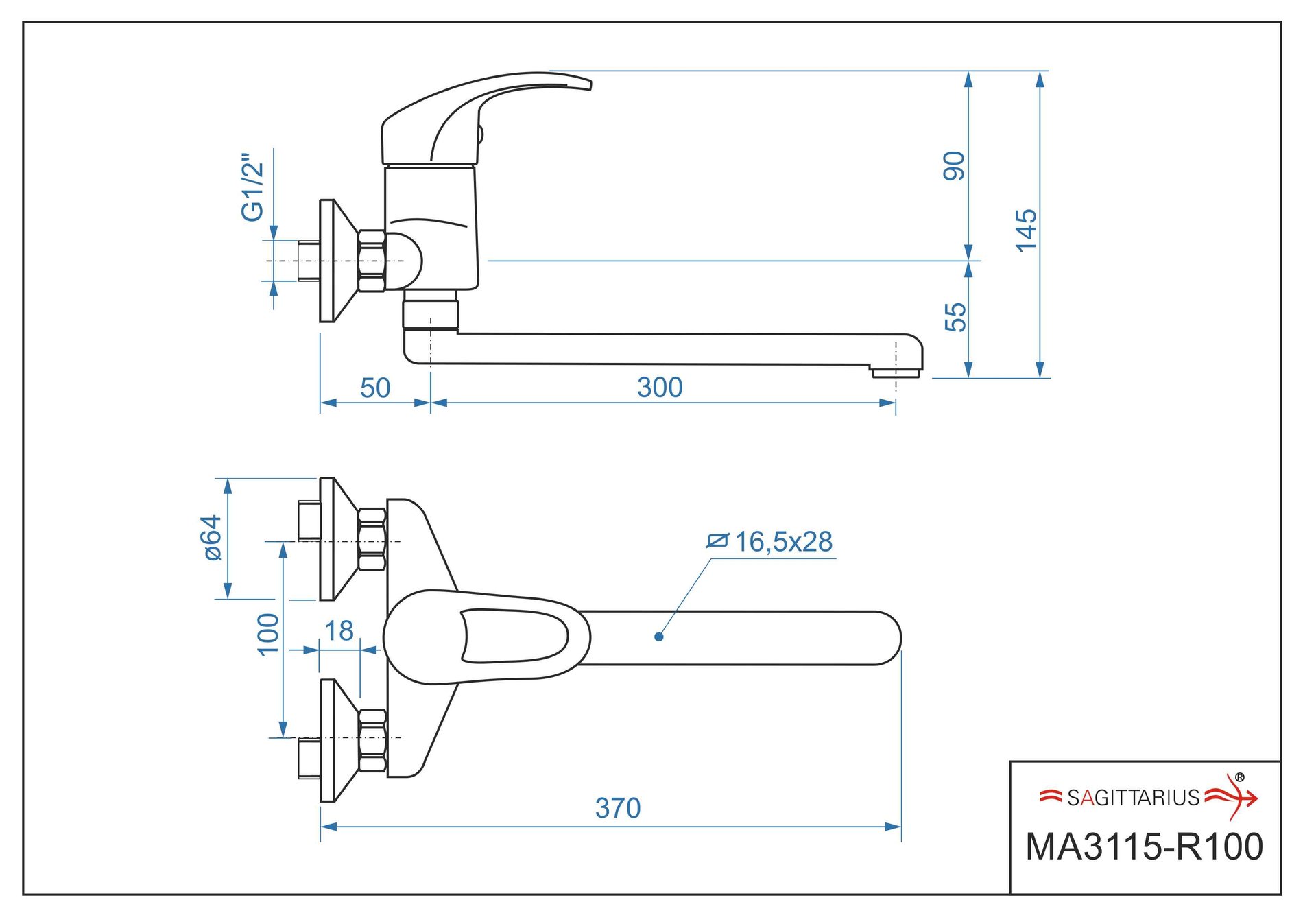 Dřezová stěnová baterie MARS s ramínkem „R“ – rozteč 100 mm