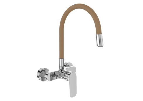 Dřezová stěnová baterie s flexi béžovým ramínkem, rozteč 150mm, DAKOTA