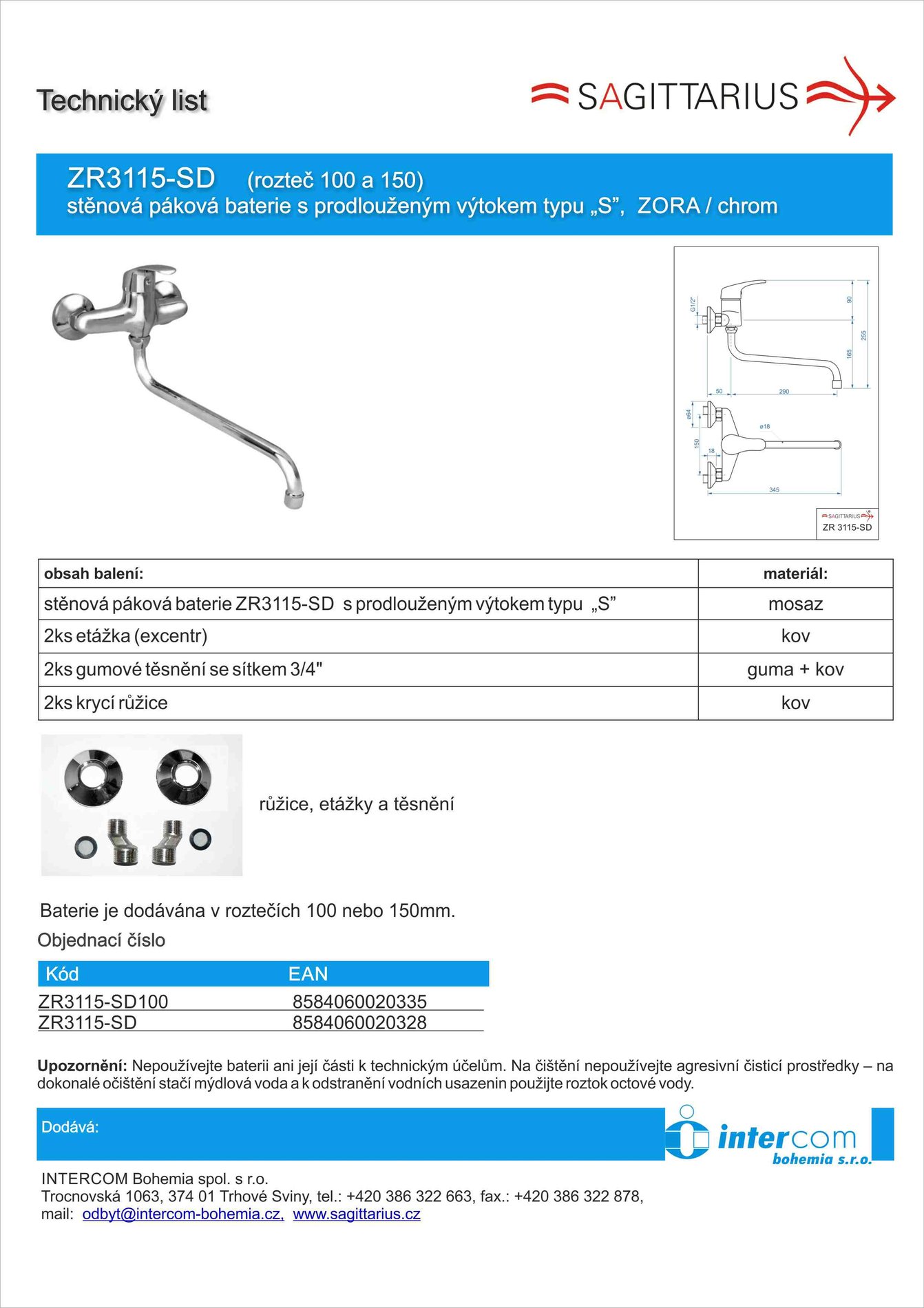 Technický list dodavateleRozměrový výkresProhlášení o shoděNávod