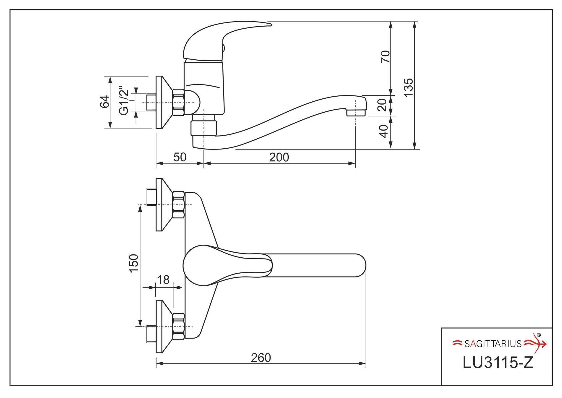 Dřezová stěnová baterie LUNA s ramínkem „Z“ (ramínko 200 mm) – rozteč 150 mm