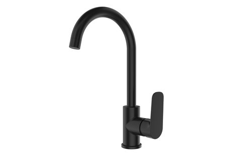 DAKOTA, dřezová stojánková baterie, black matDřezové vodovodní baterie zastávají dominantní postavení v každé kuchyni. Umístěné nad dřezem jsou nepostradatelným pomocníkem zejména při mytí nádobí. Rameno dřezové baterie by mělo být delší, abychom jej mohli natočit podle potřeby a tím měnit umístění proudu vytékající vody. Dřezová stojánková baterie designové řady DAKOTA BLACK plně odpovídá těmto požadavkům. Je vybavena pevným vysokým plně… Podrobný popis