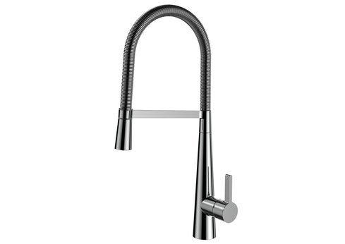 Dřezová stojánková vodovodní baterie s flexibilním (tvarovatelným) výtokovým ramínkem. Koncovka ramínka vybavená perlátorem je uchycena v konzoli z níž se dá vyjmout a použít jako sprška. Ramínko baterie je plně otočné (360°) Stejně jako ostatní pákové baterie má i tato svou nejdůležitější část – kartuši. Na té závisí plynulý chod vodovodní baterie (vypínání zapínání a smíchání teplé a studené vody) a proto velmi záleží na její kvalitě. V této baterii je kartuše osazena kvalitními keramickými destičkami, které zajišťují dlouhou a bezproblémovou životnost. Na kartuši se navíc vztahuje i prodloužená záruka 6 let.