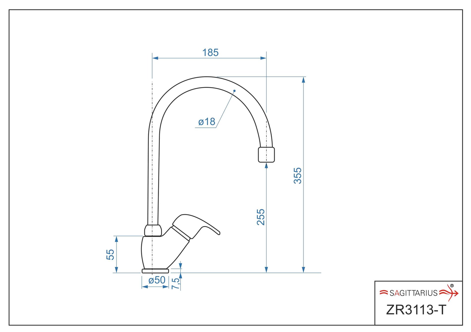 Dřezová stojánková baterie ZORA s ramínkem „T“