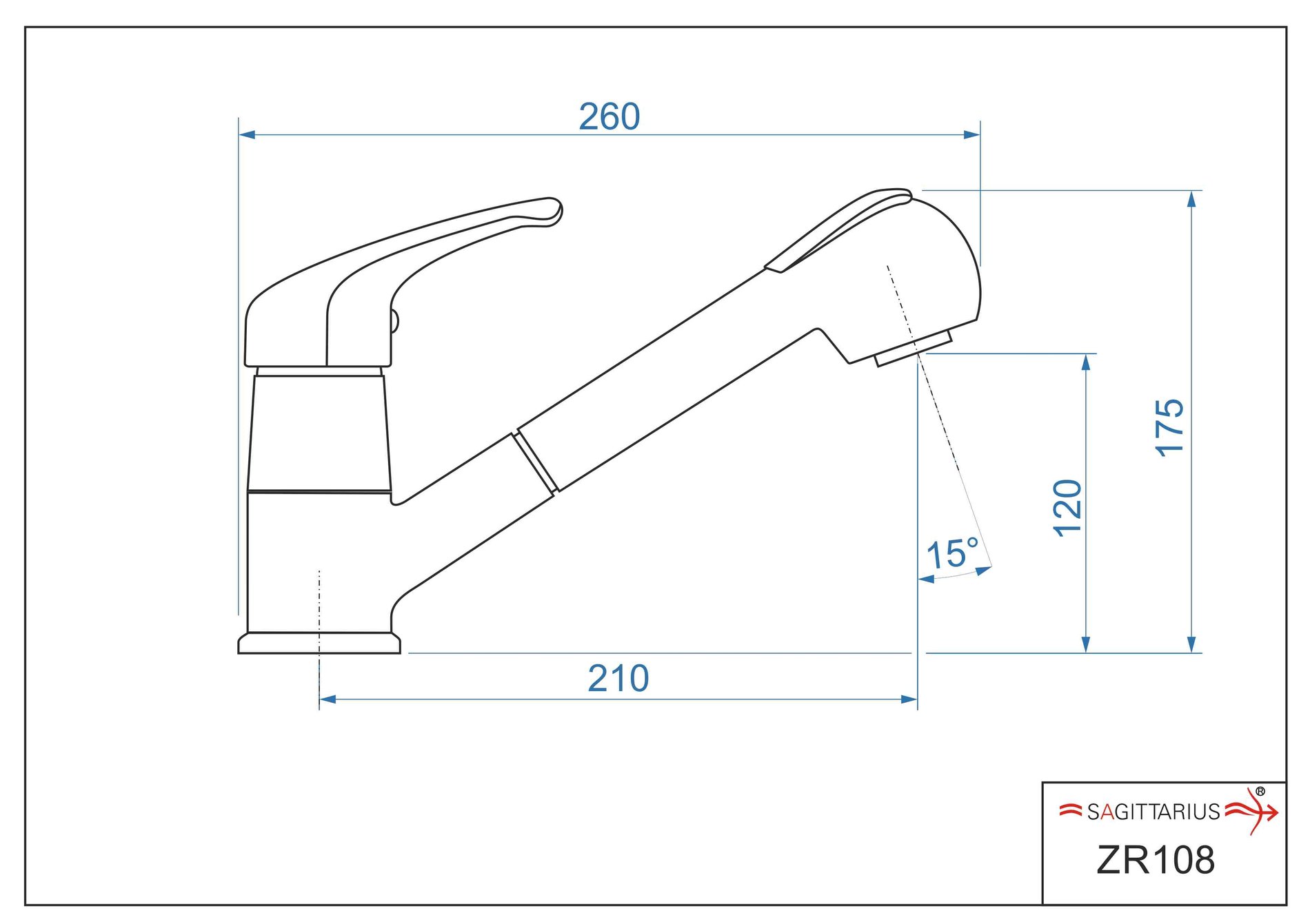 Dřezové vodovodní baterice s výsuvnou sprchou usnadňují práci zejména při vymývání a oplachování větších nádob (hrnce, mísy, pečící plechy a pod). Dutinou výtokového ramínka baterie prochází hadice zakončená dvoupolohovou sprchou. Hadice se sprškou se dá vytáhnout z ramínka, čímž se značně rozšíří pracovní prostor dřezové baterie. Pod pracovní deskou je hadice zatížena malým olověným závažím, jehož váha hadici se sprškou vždy spolehlivě vrátí (stáhne) na původní místo. Stejně jako ostatní pákové baterie má i tato svou nejdůležitější část – kartuši. Na té závisí plynulý chod vodovodní baterie (vypínání zapínání a smíchání teplé a studené vody) a proto velmi záleží na její kvalitě. V této baterii je kartuše osazena kvalitními keramickými destičkami, které zajišťují dlouhou a bezproblémovou životnost. Na kartuši se navíc vztahuje i prodloužená záruka 6 let. Ramínko dřezové stojánkové baterie je plně otočné (360°) součástí balení jsou vysokokvalitní flexi hadičky 3/8“ × M10, délky 35 cm s krátkou koncovkou