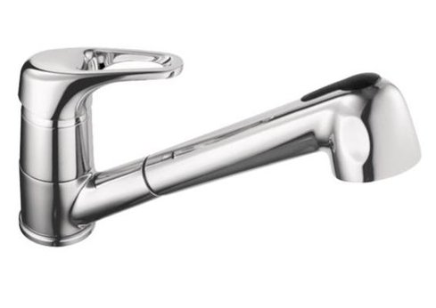 Dřezové vodovodní baterice s výsuvnou sprchou usnadňují práci zejména při vymývání a oplachování větších nádob (hrnce, mísy, pečící plechy a pod). Dutinou výtokového ramínka baterie prochází hadice zakončená dvoupolohovou sprchou. Hadice se sprškou se dá vytáhnout z ramínka, čímž se značně rozšíří pracovní prostor dřezové baterie. Pod pracovní deskou je hadice zatížena malým olověným závažím, jehož váha hadici se sprškou vždy spolehlivě vrátí (stáhne) na původní místo. Stejně jako ostatní pákové baterie má i tato svou nejdůležitější část – kartuši. Na té závisí plynulý chod vodovodní baterie (vypínání zapínání a smíchání teplé a studené vody) a proto velmi záleží na její kvalitě. V této baterii je kartuše osazena kvalitními keramickými destičkami, které zajišťují dlouhou a bezproblémovou životnost. Typ kartuše osazený v této baterii je navíc vybaven bezpečnostně úsporným systémem KLIK/KLAK. Na kartuši se navíc vztahuje i prodloužená záruka 6 let. Ramínko dřezové stojánkové baterie je plně otočné (360°)