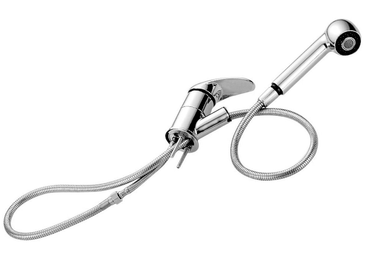 Dřezové vodovodní baterice s výsuvnou sprchou usnadňují práci zejména při vymývání a oplachování větších nádob (hrnce, mísy, pečící plechy a pod). Dutinou výtokového ramínka baterie prochází hadice zakončená dvoupolohovou sprchou. Hadice se sprškou se dá vytáhnout z ramínka, čímž se značně rozšíří pracovní prostor dřezové baterie. Pod pracovní deskou je hadice zatížena malým olověným závažím, jehož váha hadici se sprškou vždy spolehlivě vrátí (stáhne) na původní místo. Stejně jako ostatní pákové baterie má i tato svou nejdůležitější část – kartuši. Na té závisí plynulý chod vodovodní baterie (vypínání zapínání a smíchání teplé a studené vody) a proto velmi záleží na její kvalitě. V této baterii je kartuše osazena kvalitními keramickými destičkami, které zajišťují dlouhou a bezproblémovou životnost. Typ kartuše osazený v této baterii je navíc vybaven bezpečnostně úsporným systémem KLIK/KLAK. Na kartuši se navíc vztahuje i prodloužená záruka 6 let. Ramínko dřezové stojánkové baterie je plně otočné (360°)