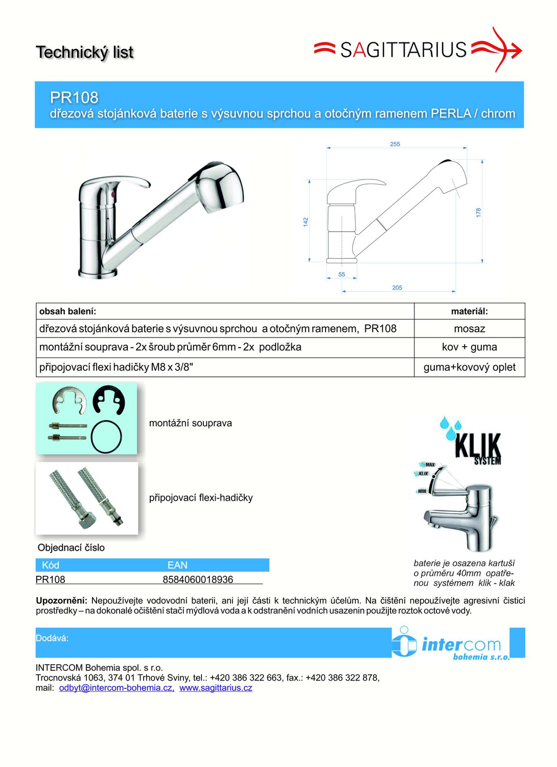 NávodSchéma zapojeníProhlášení o shoděNastavení průtokuSystém klik-klak