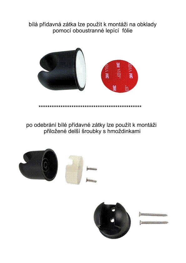 Držák umožňuje montáž dvěma způsoby: pomocí samolepící fólie pomocí dvou šroubů (jsou součástí dodávky)