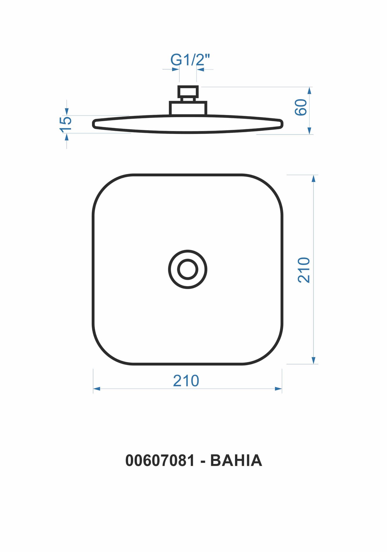 BAHIA, pevná sprcha 210×210 mm, plast chrom/bílá (00607081)