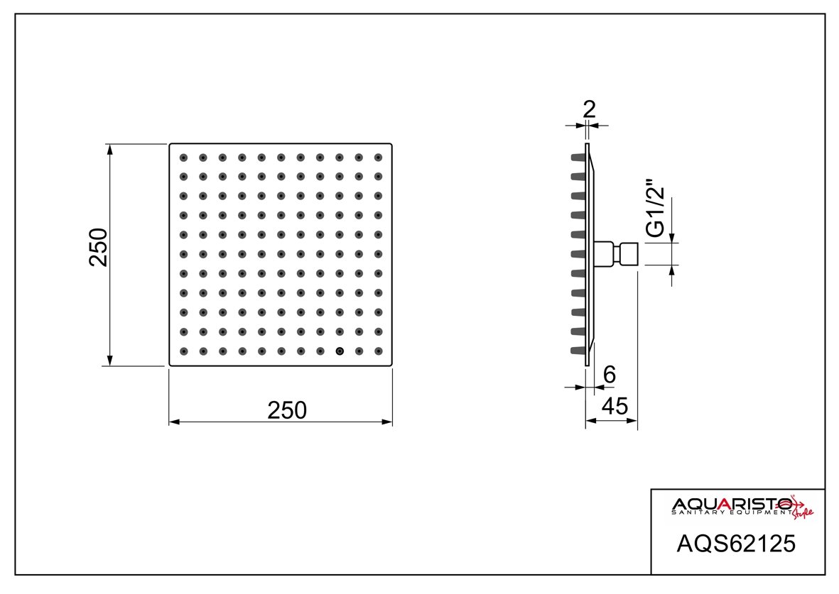 Pevná sprcha 250×250 mm, nerezová, SUPERSLIM