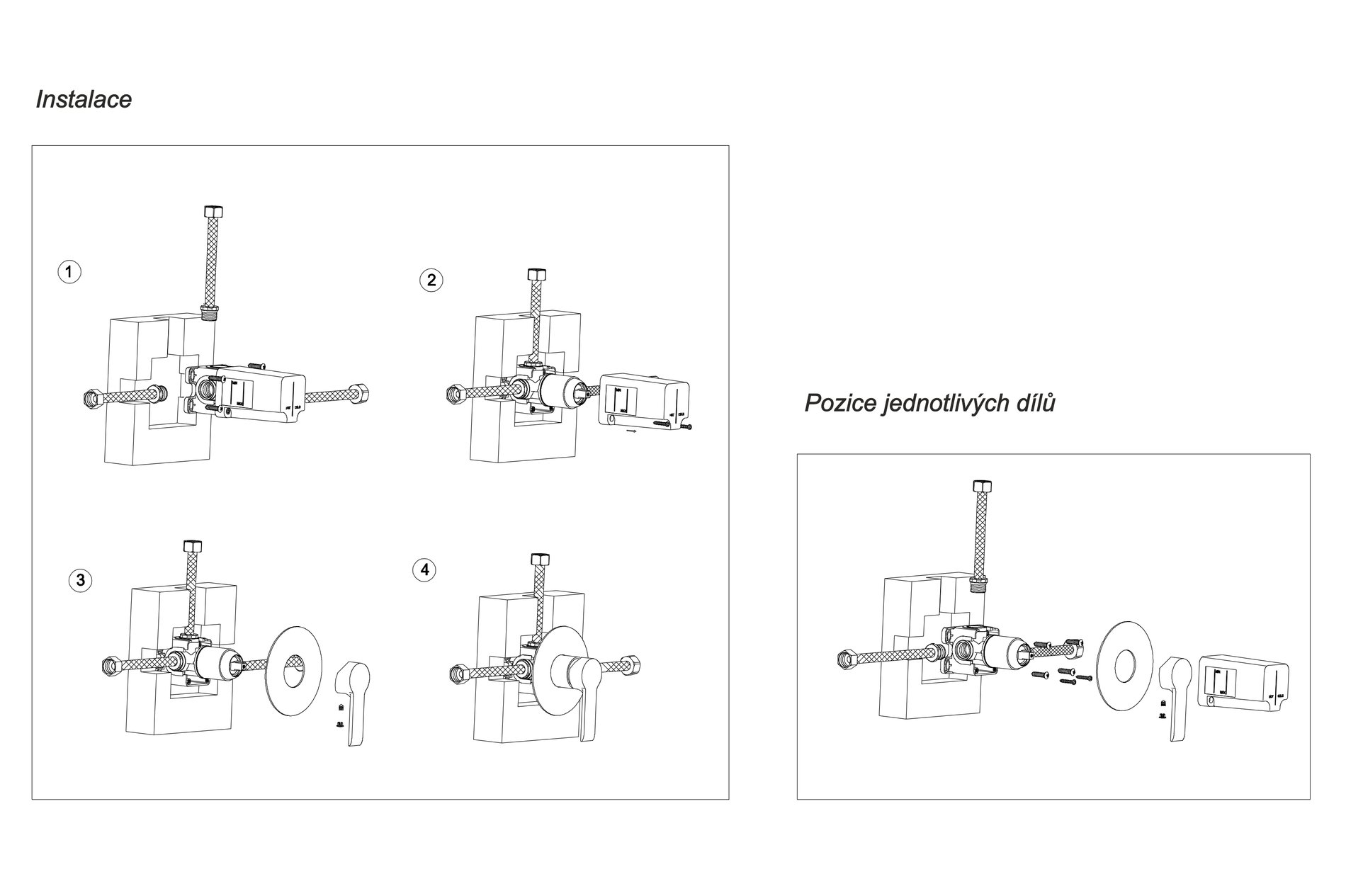 Podomítková část baterie je upevněna v ochranném boxu z odolného plastu (AQ BOX), umožňujícím pohodlnou a bezpečnou montáž AQ BOX se skládá ze dvou dílů: spodní díl slouží k ukotvení baterie ve stěně horní díl je určen k ochraně povrchu baterie před poškozením při montáži a zednických pracích – ve finále se odstraní V naší nabídce je celá řada příslušenství mezi něž patří např, hlavové sprchy, ruční sprchy, stěnové vývody ze zdi s držákem sprchy .