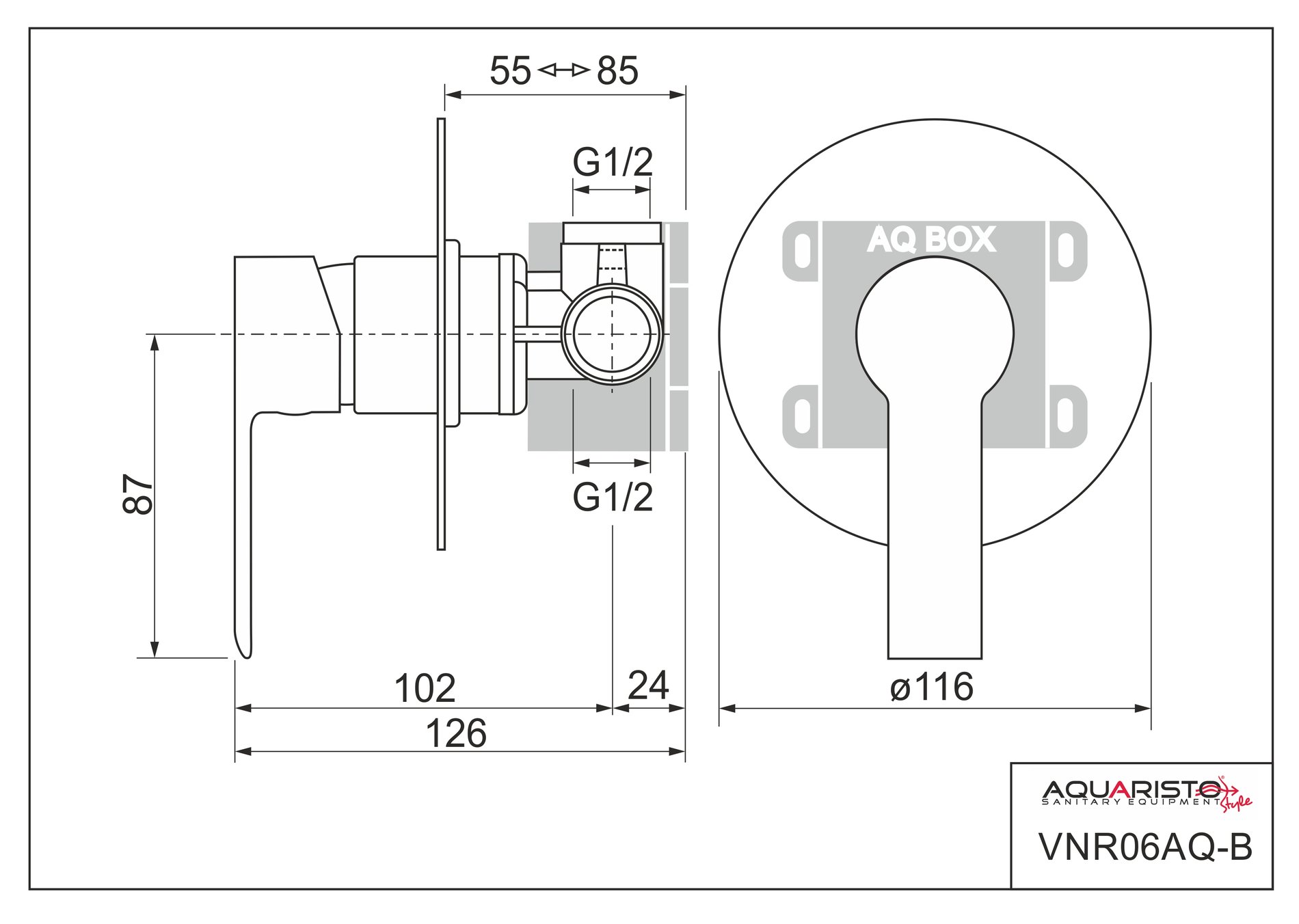 Podomítková sprchová baterie pro 1 odběrné místo, s AQ-boxem, VENTURA
