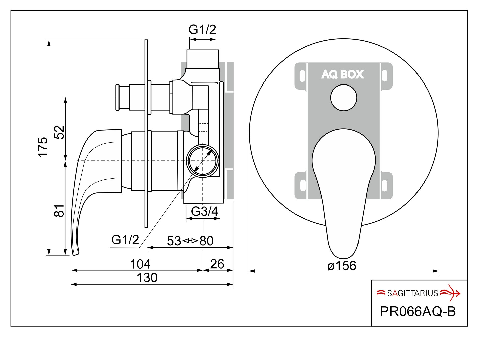 Podomítková část baterie je upevněna v ochranném boxu z odolného plastu (AQ BOX), umožňujícím pohodlnou a bezpečnou montáž AQ BOX se skládá ze dvou dílů: spodní díl slouží k ukotvení baterie ve stěně horní díl je určen k ochraně povrchu baterie před poškozením při montáži a zednických pracích – ve finále se odstraní přepínač sprchy je vybaven vratnou pružinou a nelze jej aretovat, po vypnutí vody se vrátí do výchozí polohy