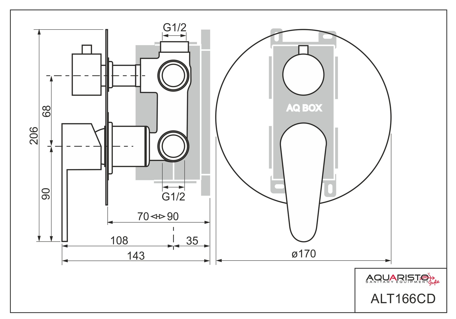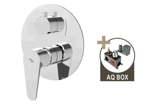 Podomítková část baterie je upevněna v ochranném boxu z odolného plastu (AQ BOX), umožňující pohodlnou a bezpečnou montáž. AQ BOX se skládá ze tří částí: spodní a prostřední díl slouží k ukotvení baterie ve stěně horní díl je určen k ochraně povrchu baterie před poškozením při montáži a zednických pracích – ve finále se odstraní horní kryt AQ BOXu je vybaven krabicovou libelou pro usnadnění usazení boxu při montáži (pomocný montážní prvek) Baterie je osazena spolehlivým dvoupolohovým keramickým přepínačem režimu průtoku (přepínání výtoku z baterie do zvoleného odběrného místa – ruční sprcha, hlavová sprcha, vana apod.). Je ovládán samostatnou páčkou otáčením (krajní polohy jsou naznačeny hroty oboustranné šipky vyleptané do krytu baterie).