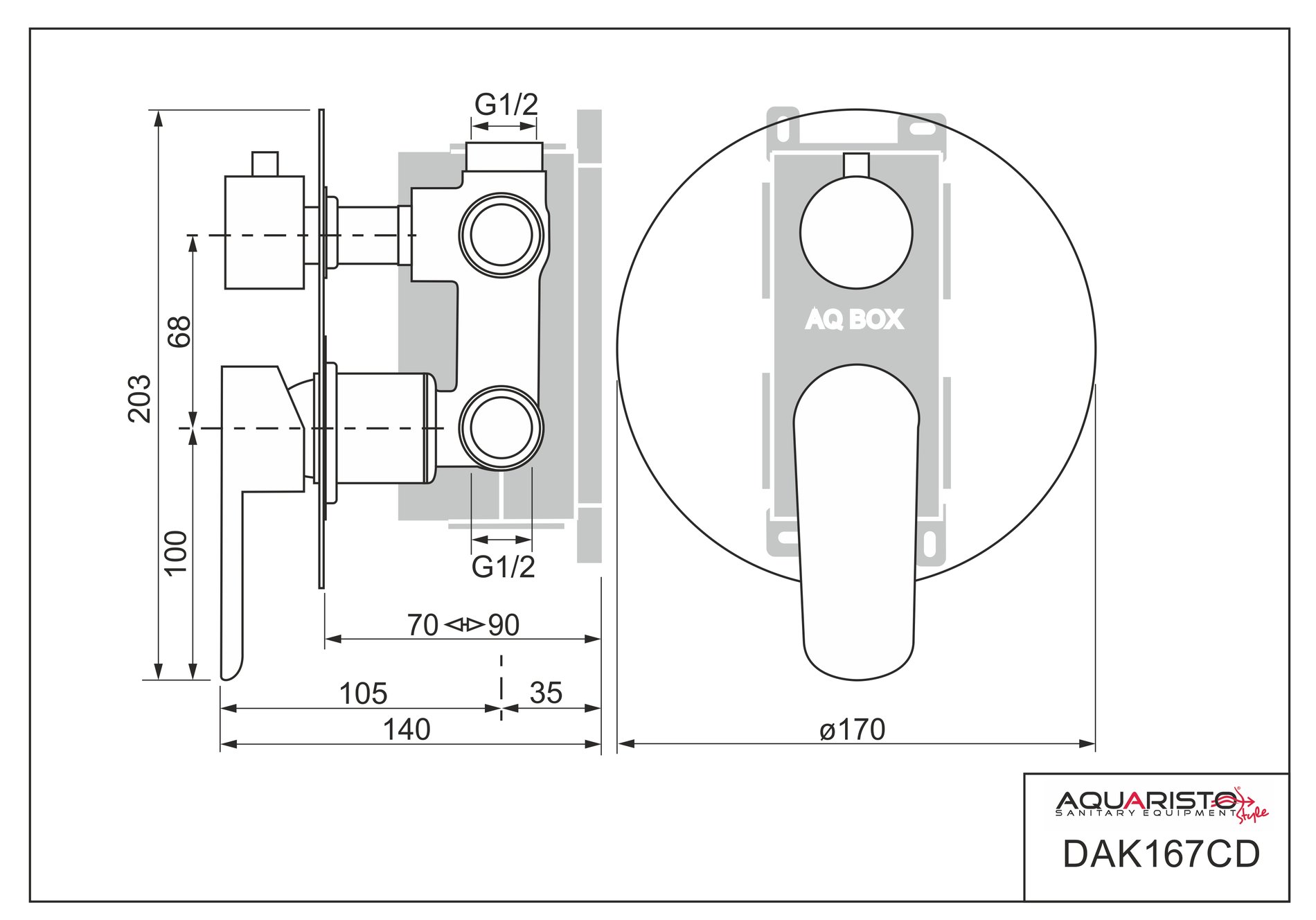 Podomítková část baterie je upevněna v ochranném boxu z odolného plastu (AQ BOX), umožňující pohodlnou a bezpečnou montáž. AQ BOX se skládá ze tří částí: spodní a prostřední díl slouží k ukotvení baterie ve stěně horní díl je určen k ochraně povrchu baterie před poškozením při montáži a zednických pracích – ve finále se odstraní horní kryt AQ BOXu je vybaven krabicovou libelou pro usnadnění usazení boxu při montáži (pomocný montážní prvek) Baterie je osazena spolehlivým třípolohovým keramickým přepínačem režimu průtoku (přepínání výtoku z baterie do zvoleného odběrného místa – ruční sprcha, hlavová sprcha, vana apod.). Je ovládán samostatnou páčkou otáčením (všechny tři možné polohy jsou vyznačeny ryskami vyleptanými do krytu baterie).