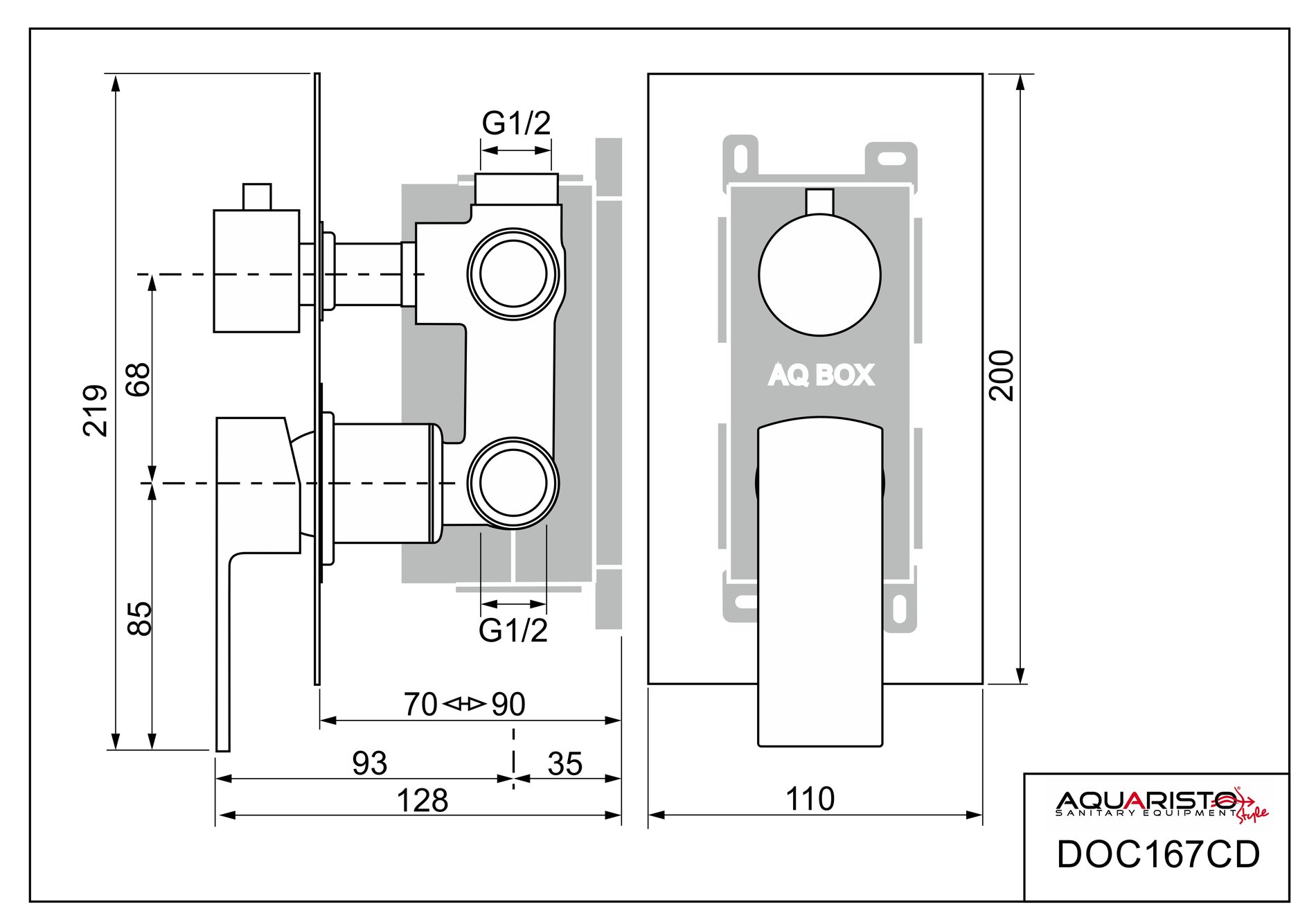 Podomítková část baterie je upevněna v ochranném boxu z odolného plastu (AQ BOX), umožňující pohodlnou a bezpečnou montáž. AQ BOX se skládá ze tří částí: spodní a prostřední díl slouží k ukotvení baterie ve stěně horní díl je určen k ochraně povrchu baterie před poškozením při montáži a zednických pracích – ve finále se odstraní horní kryt AQ BOXu je vybaven krabicovou libelou pro usnadnění usazení boxu při montáži (pomocný montážní prvek) Baterie je osazena spolehlivým třípolohovým keramickým přepínačem režimu průtoku (přepínání výtoku z baterie do zvoleného odběrného místa – ruční sprcha, hlavová sprcha, vana apod.). Je ovládán samostatnou páčkou otáčením (všechny tři možné polohy jsou vyznačeny ryskami vyleptanými do krytu baterie).