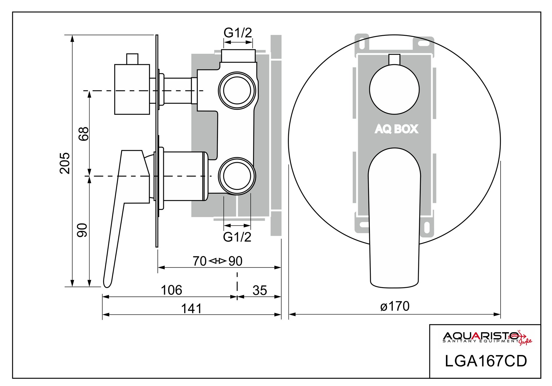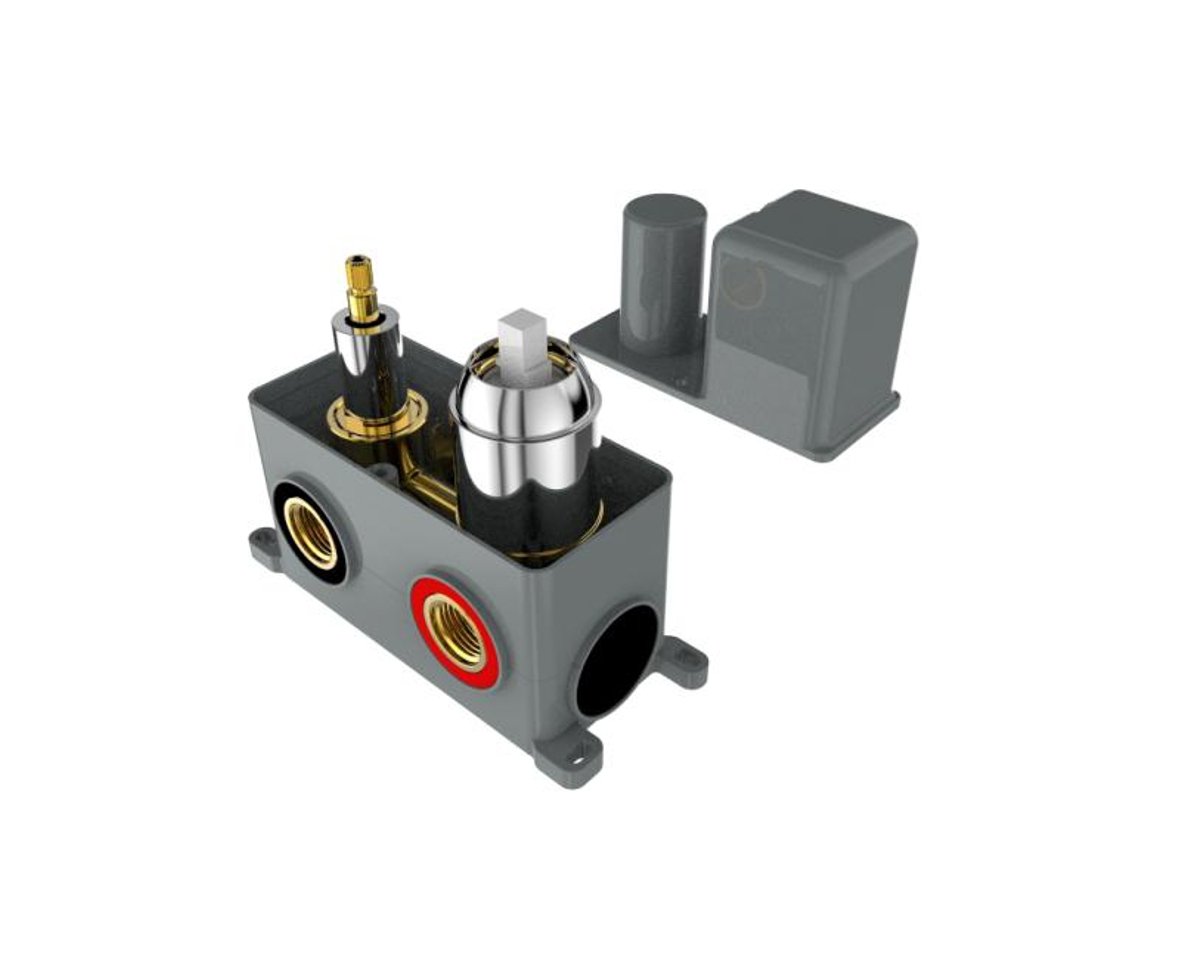 Podomítková část baterie je upevněna v ochranném boxu z odolného plastu (AQ BOX), umožňující pohodlnou a bezpečnou montáž. AQ BOX se skládá ze tří částí: spodní a prostřední díl slouží k ukotvení baterie ve stěně horní díl je určen k ochraně povrchu baterie před poškozením při montáži a zednických pracích – ve finále se odstraní horní kryt AQ BOXu je vybaven krabicovou libelou pro usnadnění usazení boxu při montáži (pomocný montážní prvek) Baterie je osazena spolehlivým třípolohovým keramickým přepínačem režimu průtoku (přepínání výtoku z baterie do zvoleného odběrného místa – ruční sprcha, hlavová sprcha, vana apod.). Je ovládán samostatnou páčkou otáčením (všechny tři možné polohy jsou vyznačeny ryskami vyleptanými do krytu baterie).