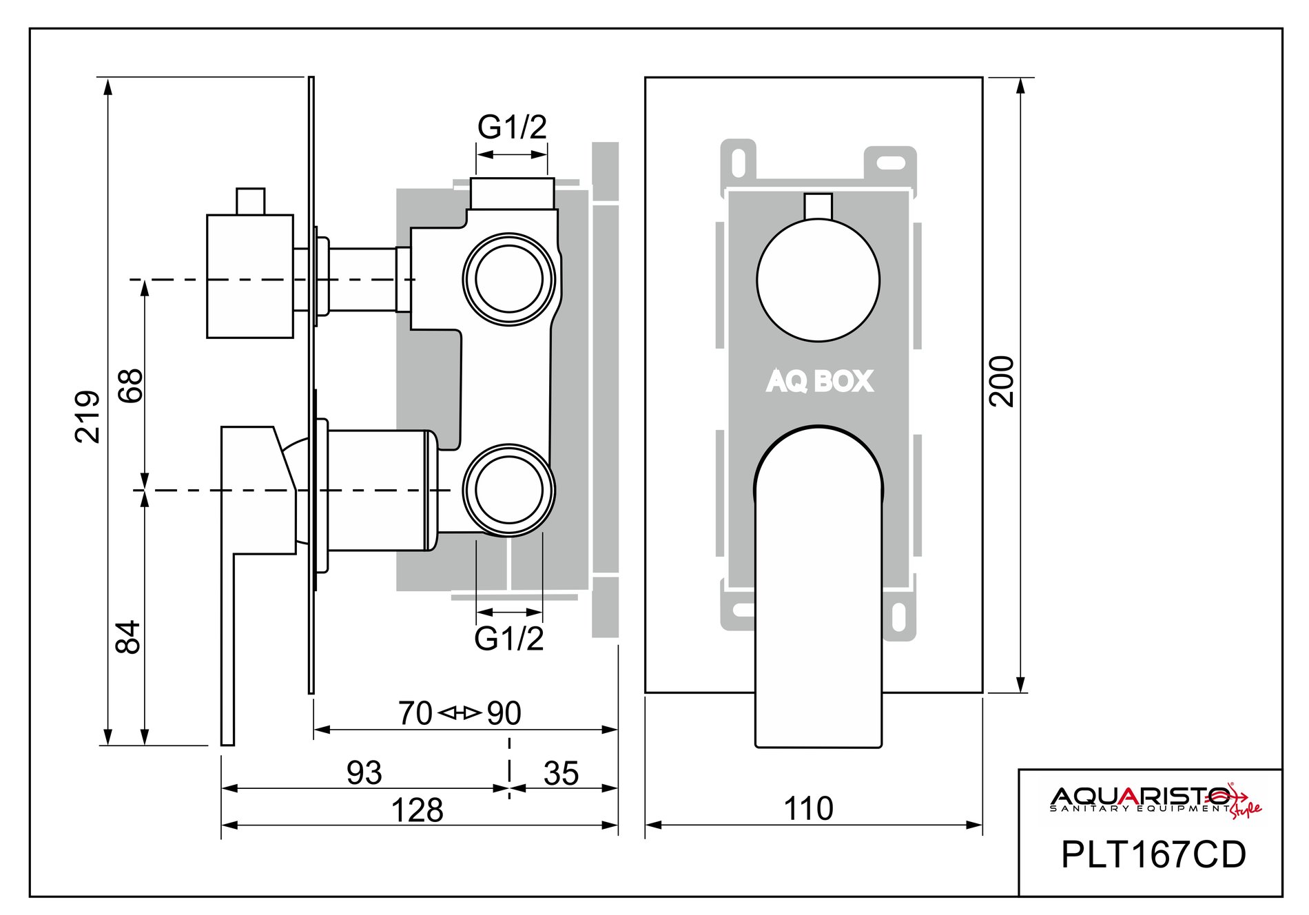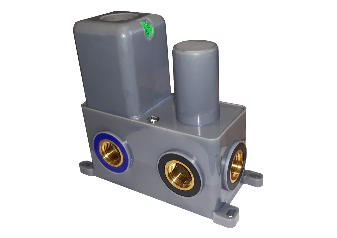 Podomítková část baterie je upevněna v ochranném boxu z odolného plastu (AQ BOX), umožňujícím pohodlnou a bezpečnou montáž AQ BOX se skládá ze tří dílů: spodní a prostřední díl slouží k ukotvení baterie ve stěně horní díl je určen k ochraně povrchu baterie před poškozením při montáži a zednických pracech – ve finále se odstraní horní kryt AQ BOXu je vybaven krabicovou libelou pro usnadnění usazení boxu při montáži (pomocný montážní prvek) baterie je osazena kartuší (mísící mechanismus) ø 35 mm s keramickými destičkami dřík kartuše k uchycení ovládací páčky je 9 x 9 mm keramický přepínač pro přesměrování vody je ovládán samostatnou páčkou otáčením (polohy jsou vyznačeny ryskami vyleptanými do krytu baterie) baterie je dodávána bez příslušenství (příslušenství = sprchová hadice, držák sprchy a ruční sprška) kartuše není vybavena systémem „KLIK-KLAK“
