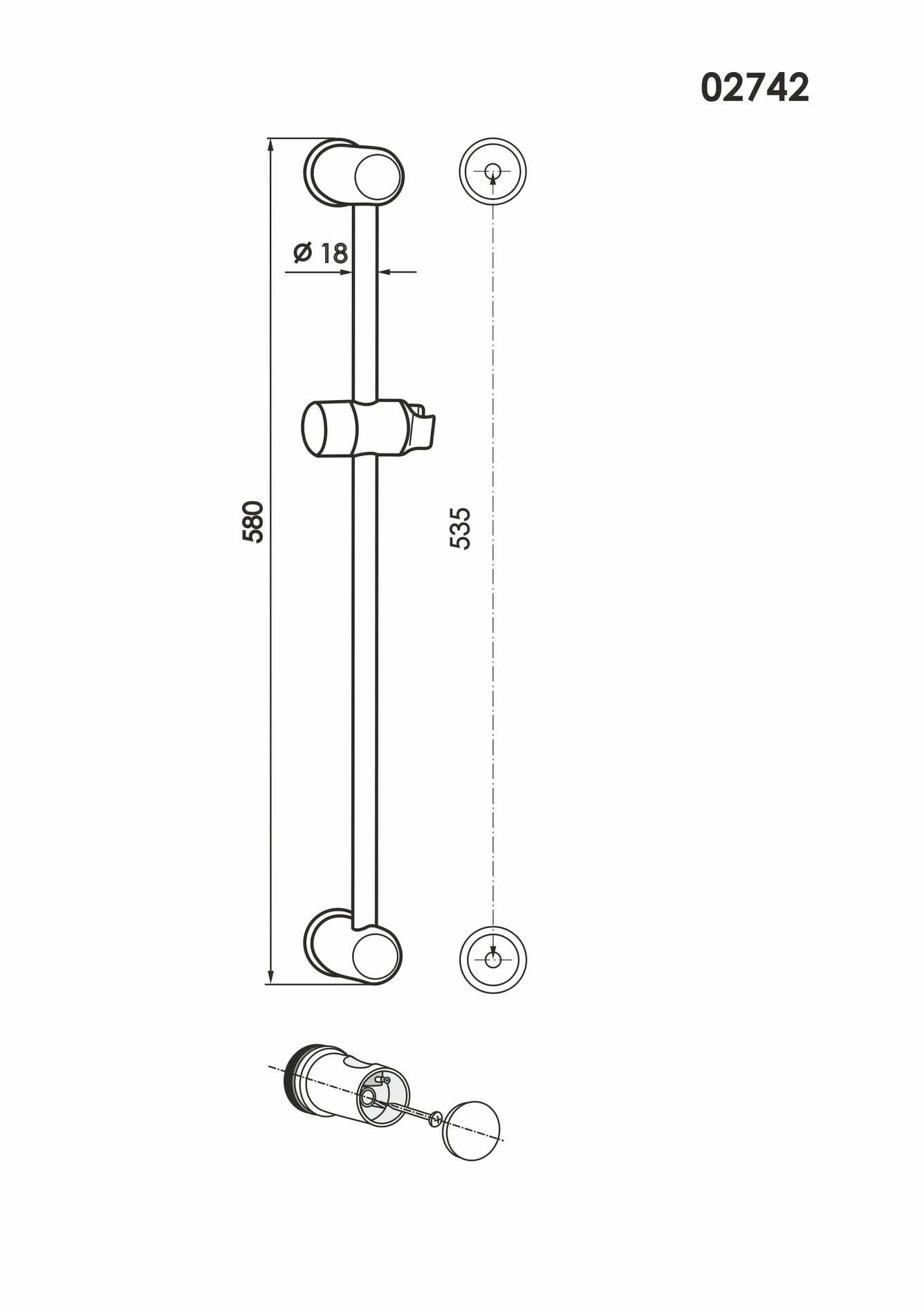 – 1-polohová plastová sprška – plastová hadice BIFLEX – 150 cm – délka kovové tyče – 60 cm – průměr tyče – 18 mm – provedení – chrom – baleno v závěsném blistru
