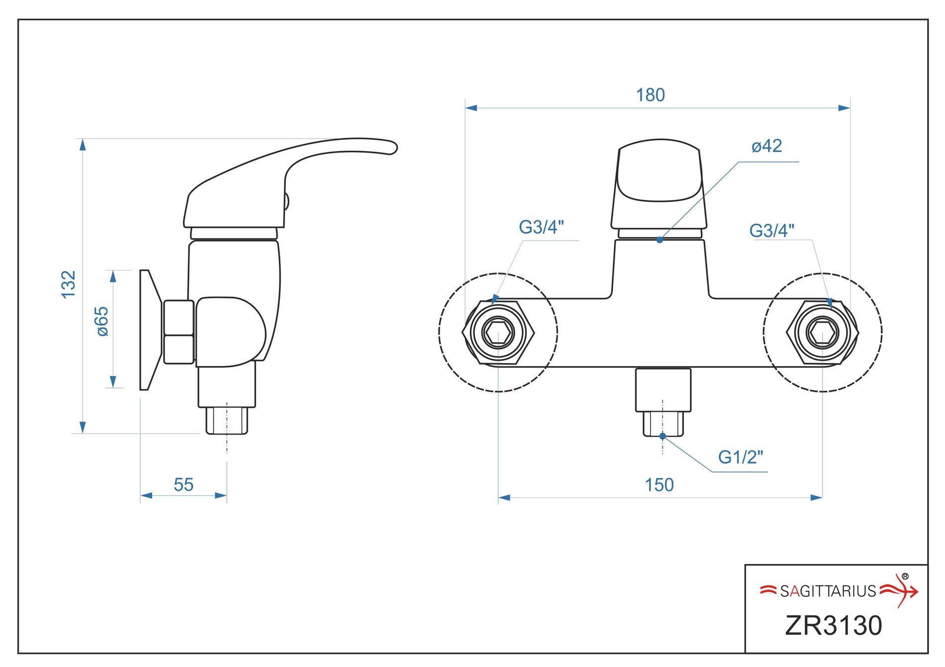 Sprchová stěnová baterie ZORA – rozteč 150 mm