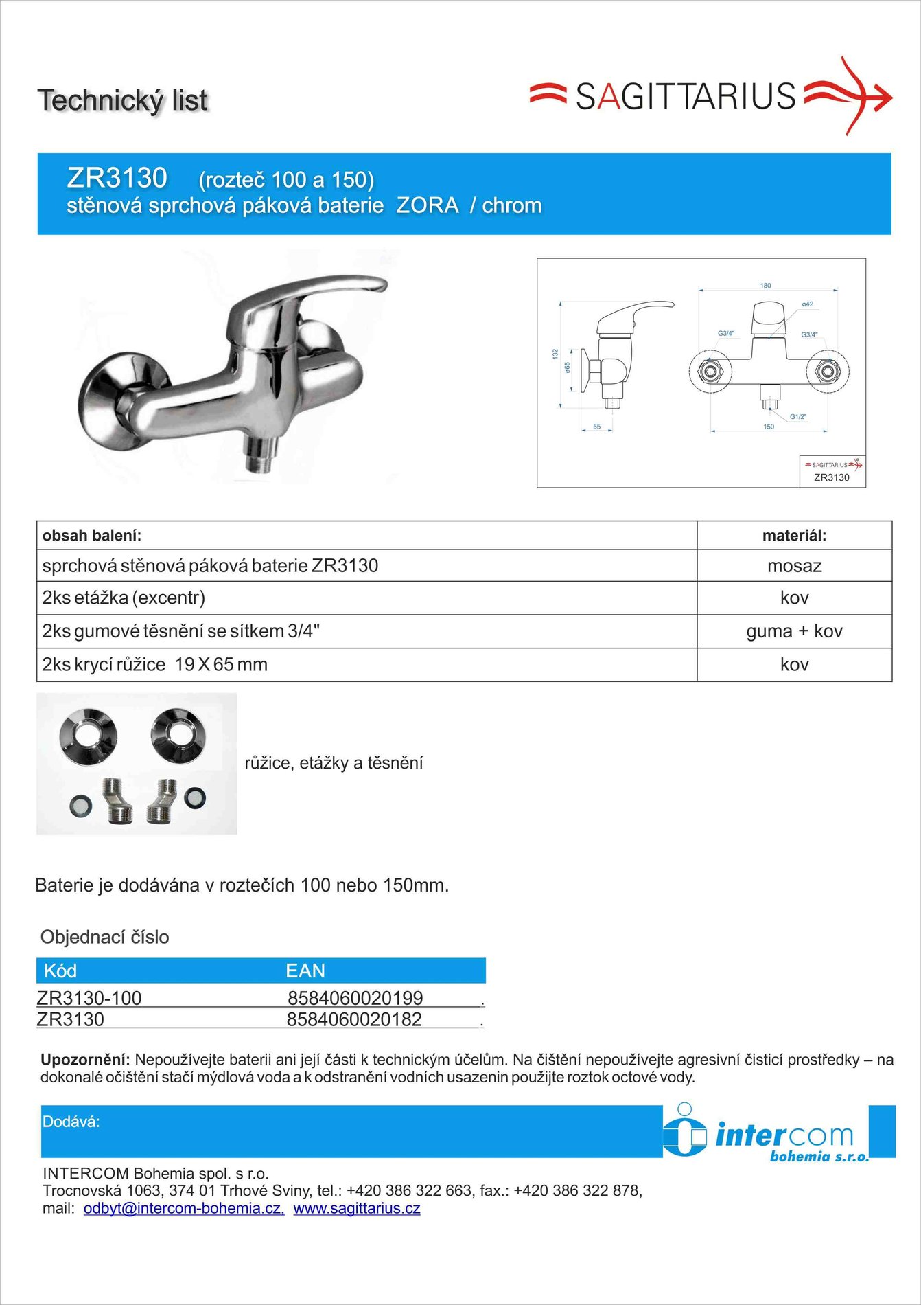 - Nástěnná sprchová baterie ZORA v chromovém provedení bude originálním prvkem vaší koupelny. Pokud sprchovou baterii sladíte s dalšími typy ze stejné série umyvadlovou , bidetovou , vanovou nebo pod omítku , přidáte sprchovou sadu a koupelnové doplňky ve stejném provedení, vytvoříte originální a moderní design vaší koupelny. – Stejně jako ostatní pákové baterie má i tato svou nejdůležitější část – kartuši . Na té závisí plynulý chod vodovodní baterie (vypínání zapínání a smíchání teplé a studené vody) a proto velmi záleží na její kvalitě. V této baterii je kartuše osazena kvalitními keramickými destičkami, které zajišťují dlouhou a bezproblémovou životnost. Na kartuši se navíc vztahuje i prodloužená záruka 6 let .