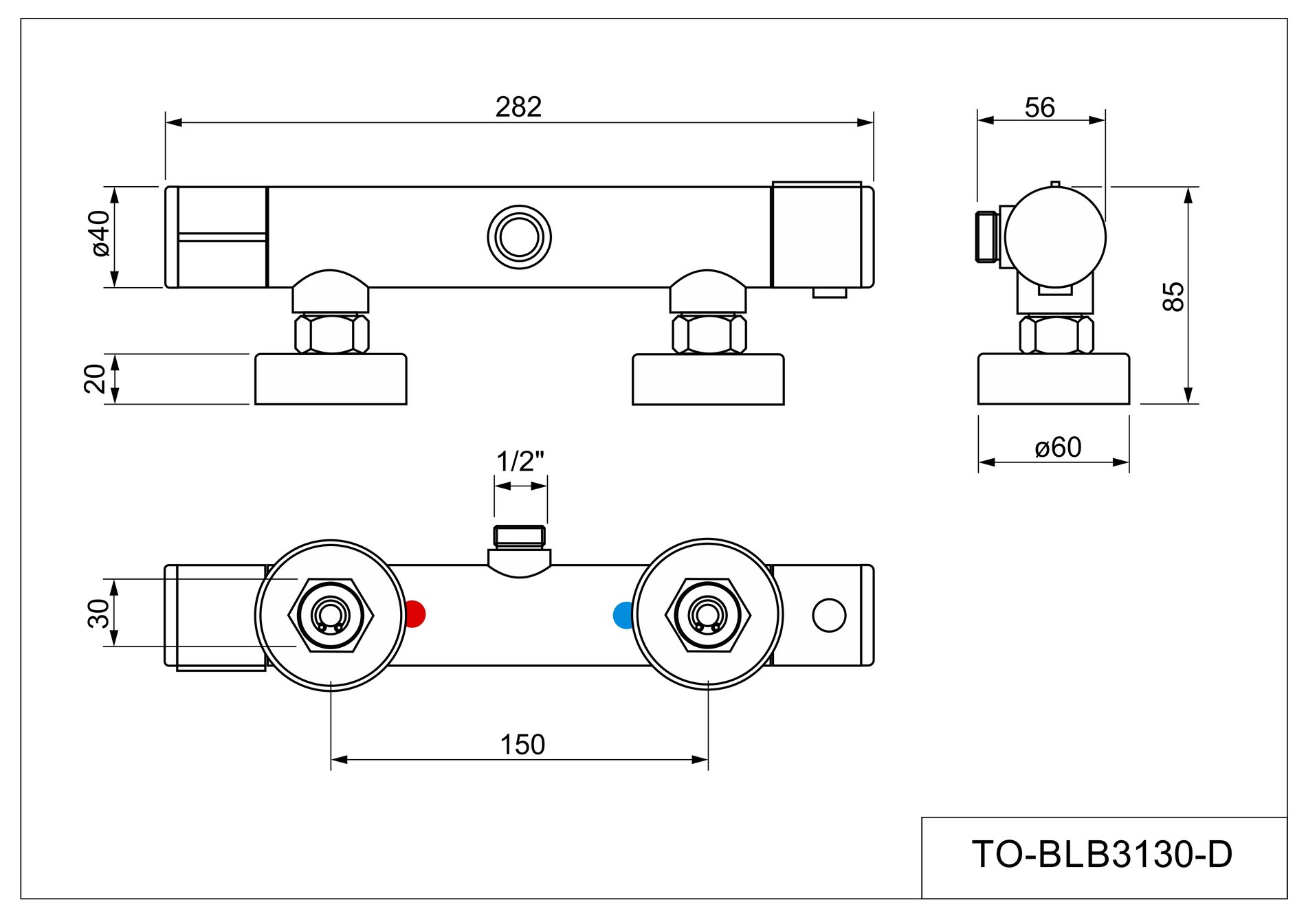 Sprchová termostatická baterie, dolní vývod, bez sprchové sady, rozteč 150mm, BLAZAR