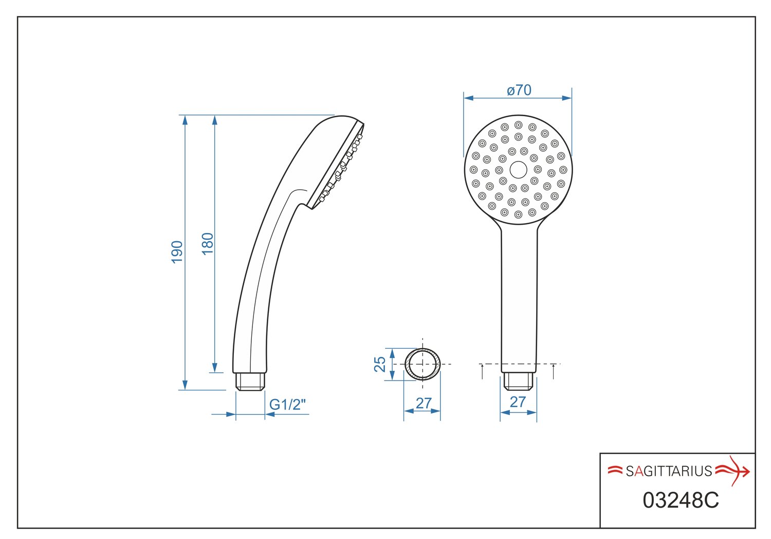 Sprchový set (1-polohová sprška, plastová hadice 150 cm, držák), BLISTR