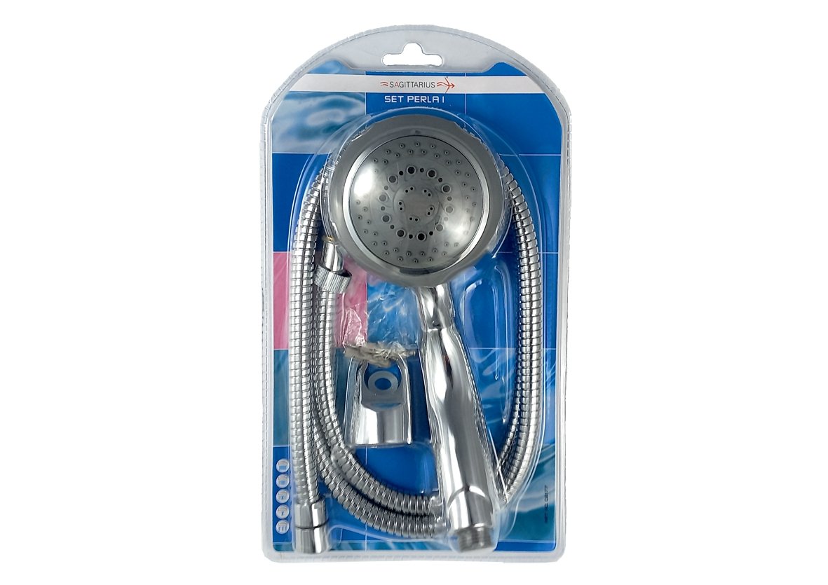 Sprchový set (5-polohová sprška, dvouzámková superpevná kovová hadice 150 cm, držák), BLISTR