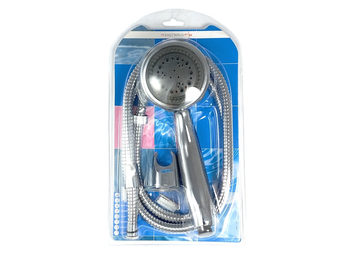 Sprchový set (8-polohová sprška, dvouzámková superpevná kovová hadice 150 cm, držák), BLISTR
