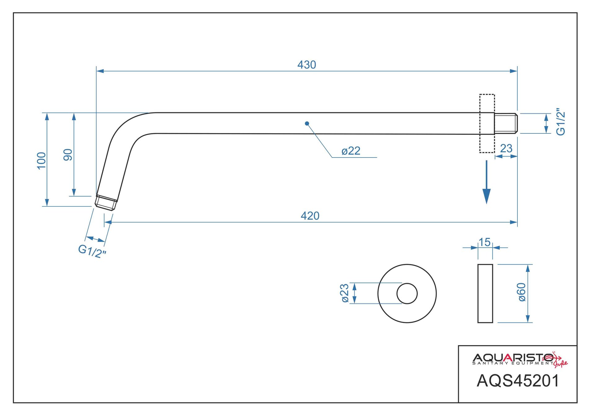 - Sprchové rameno: – ROUND MATT BLACK – délka 400 mm, černá mat, kovové