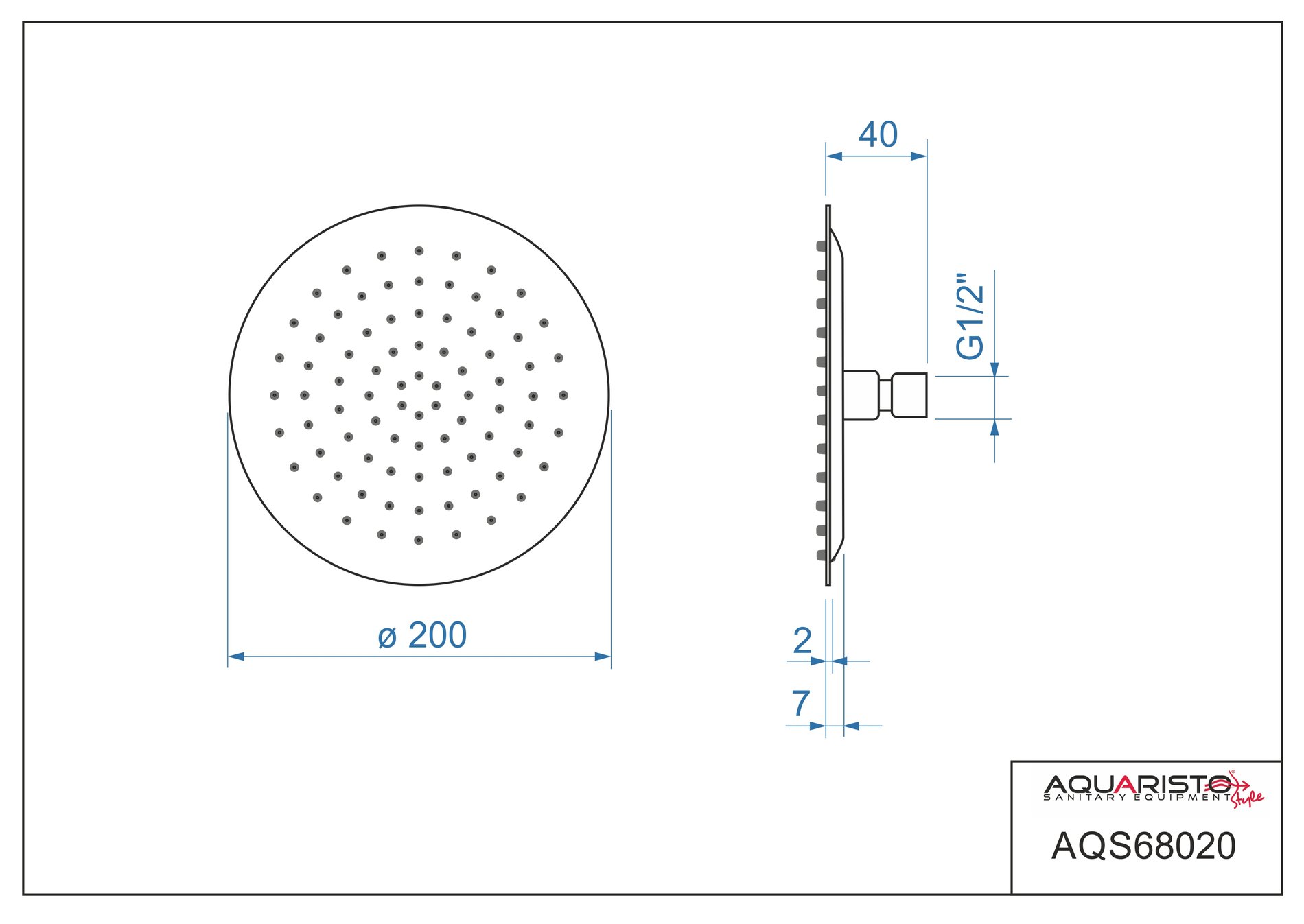 - Hlavová sprcha: – SUPERSLIM MATT BLACK – ø 200 mm, černá mat, kovová
