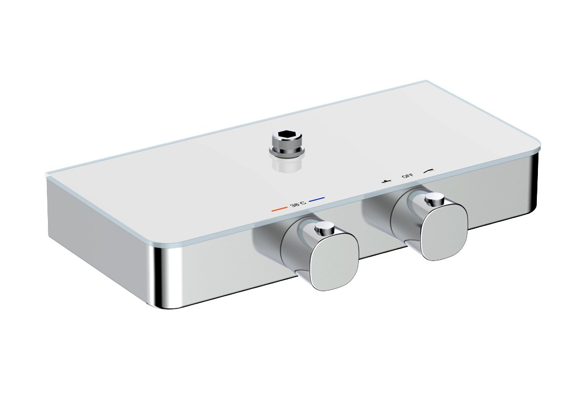 Set FORNAX značky Aquaristo Style se skládá z těchto komponentů: termostatická sprchová baterie FORNAX, určená pro 2 odběrná místa s horním vývodem pro připojení sprchové tyče a s dolním vývodem pro připojení sprchové hadice se sprškou. součástí baterie je polička z bílého kaleného skla, vhodná k ukládání šampónů a jiné kosmetiky baterie je opatřena technologií zabraňující popálení: eCold touch technology – teplota vnějšího povrchu baterie nepřekročí teplotu vody na výstupu integrovaný přepínač režimů v rukojeti: ruční sprcha / hlavová sprcha rychlá odezva při změně teploty anebo tlaku vstupní vody stabilní udržování požadované teploty vody na výstupu v případě přerušení dodávky studené vody se automaticky zablokuje voda na výstupu tepelná pojistka je nastavena na max. teplotu 38°C. povrchová úprava: chrom – bílé sklo.