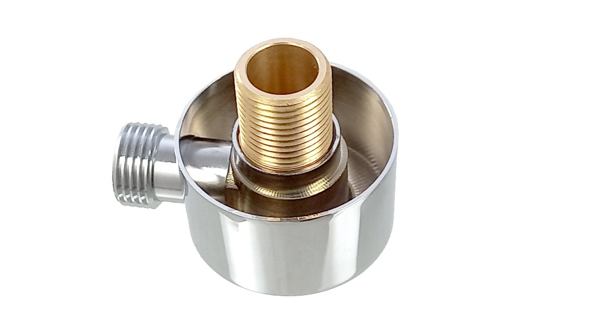 Stěnová přípojka se používá pro vyvedení vody z baterií nebo ventilů zabudovaných pod omítkou na povrch stěny. Je zároveň vybavena i úchytem na sprchu. Tento úchyt je ve většině případů pevný (nedá se natáčet) jako v tomto případě.