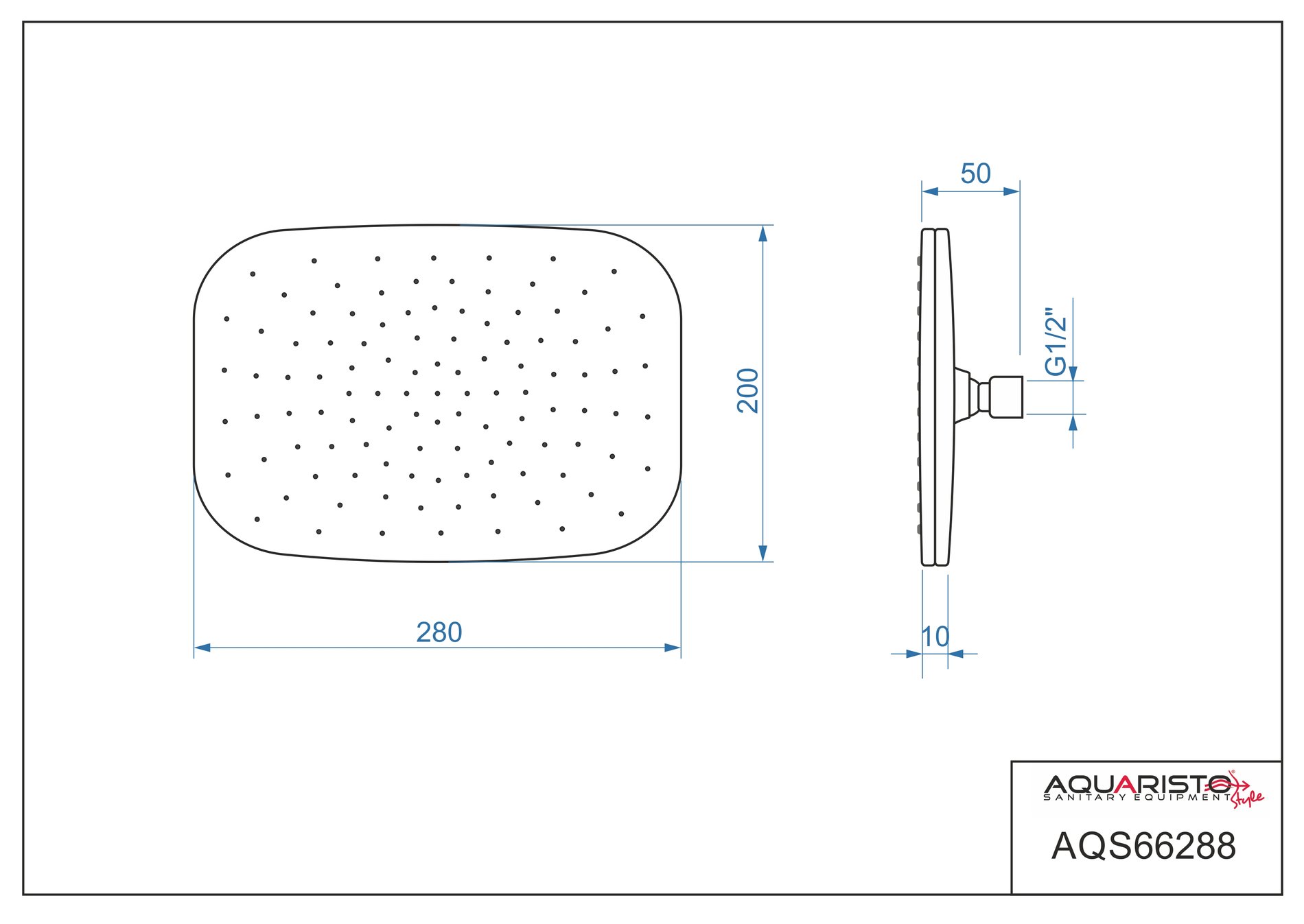 - Hlavová sprcha: – VENTURA – 200 X 280 mm, chrom