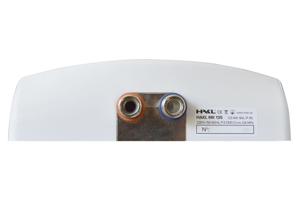 Legenda: ● ● ● ● ● pět symbolů určuje maximální vhodnost použití, x určuje nevhodnost použití výrobku Doplňkové informace. dvoufázový tlakový průtokový ohřívač HAKL MK-2 (samostatný ohřívač bez baterie) je určen k napojení do vodovodního systému (1-3 odběrná místa) na existující vodovodní baterie konstrukčně je ohřívač řešen tak, že elektronická ochrana proti zavzdušnění zabrání přepálení výhřevné spirály při vniknutí vzduchu do vodovodního potrubí má sériově zabudovanou tepelnou elektronickou pojistku a tlakový systém zabraňující poškození ohřívače při přehřátí vody systém světelné signalizace (kontrolky) je umítěn pod krytem těla ohřívače a po zapnutí jím prosvítá v případě tlaku v přívodním potrubí přesahujícím pracovní tlak definovaný výrobcem (max. 6 bar) je třeba instalovat redukční ventil (není součástí dodávky) ohřívač nelze instalovat s vývody směrem nahoru (tedy otočený) energetická třída A