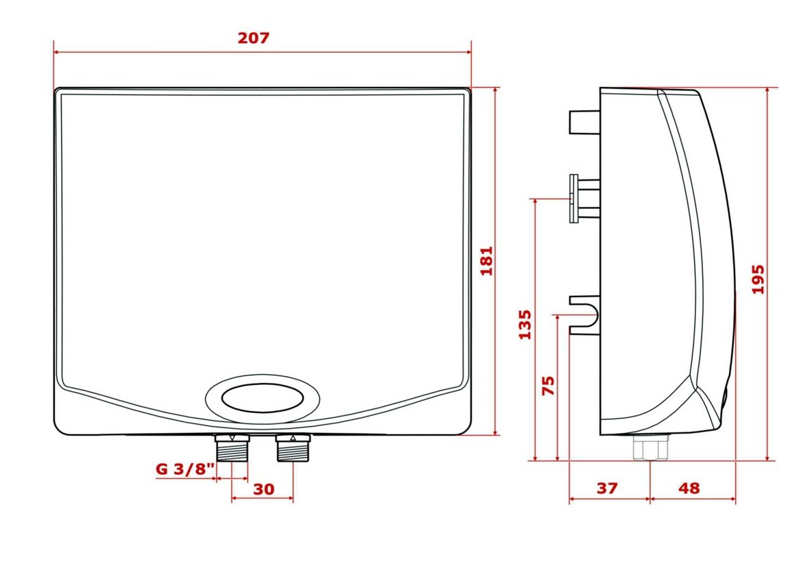 Elektrický průtokový ohřívač vody s elektronickým spínáním a tlakovým provozem – příkon 3,5 kW.