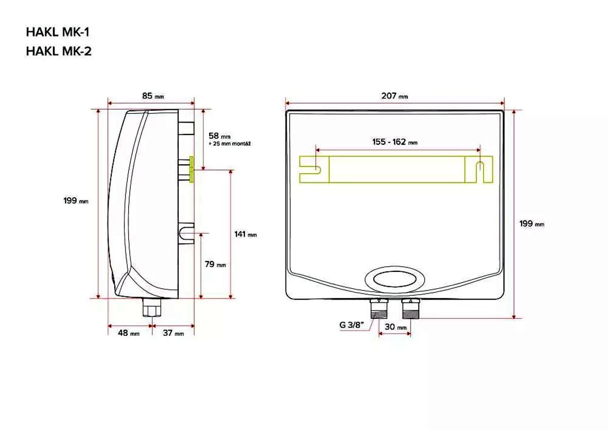 HAKL PO-MK1 lze umístit, kromě instalace nad/pod umyvadlo nebo kuchyňský dřez, i přímo do sprchového koutu, případně do exteriéru na letní terasu. Elektronická řídící jednotka umožňuje instalaci i do vodovodního systému s domácí vodárnou s častým zavzdušňováním a opakovaným vypouštěním vodovodního systému. Ohřívač je možné zapojit i na Vámi zakoupenou baterii, pomocí vodo-instalačních spojek (fitinek). Elektronika zaznamenává pokles napětí v elektrické síti a blikáním kontrolky upozorňuje uživatele o poklesu výkonu ohřevu. Řídící jednotka se dvěma tepelnými pojistkami výrazně prodlužuje životnost topné spirály. Základní vlastnosti montáž na beztlakové a běžně dostupné vodovodní baterie tlakový provoz 6 bar (trvalý tlak) se spínáním od 0,6 bar elektronické spínání s řídící jednotkou zapojení na 230 V, u provedení 3,5 kW přímo do zásuvky okamžitý a nepřetržitý ohřev vody až do 43°C jeden výkonnostní stupeň výhřevných spirál vyšší stupeň vodotěsnosti IP 45 – možnost montáže přímo do sprchového koutu elektronická dvoustupňová ochrana proti přehřátí spirál hydraulická ochrana proti přehřátí ohřevného systému