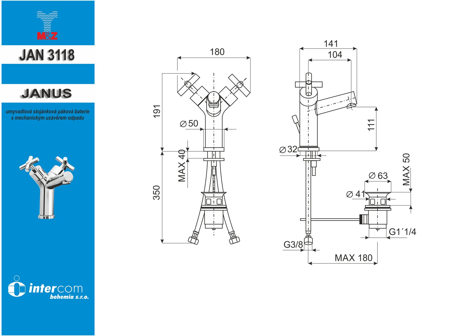 Umyvadlová stojánková baterie s uzávěrem sifonu, chrom, JANUS