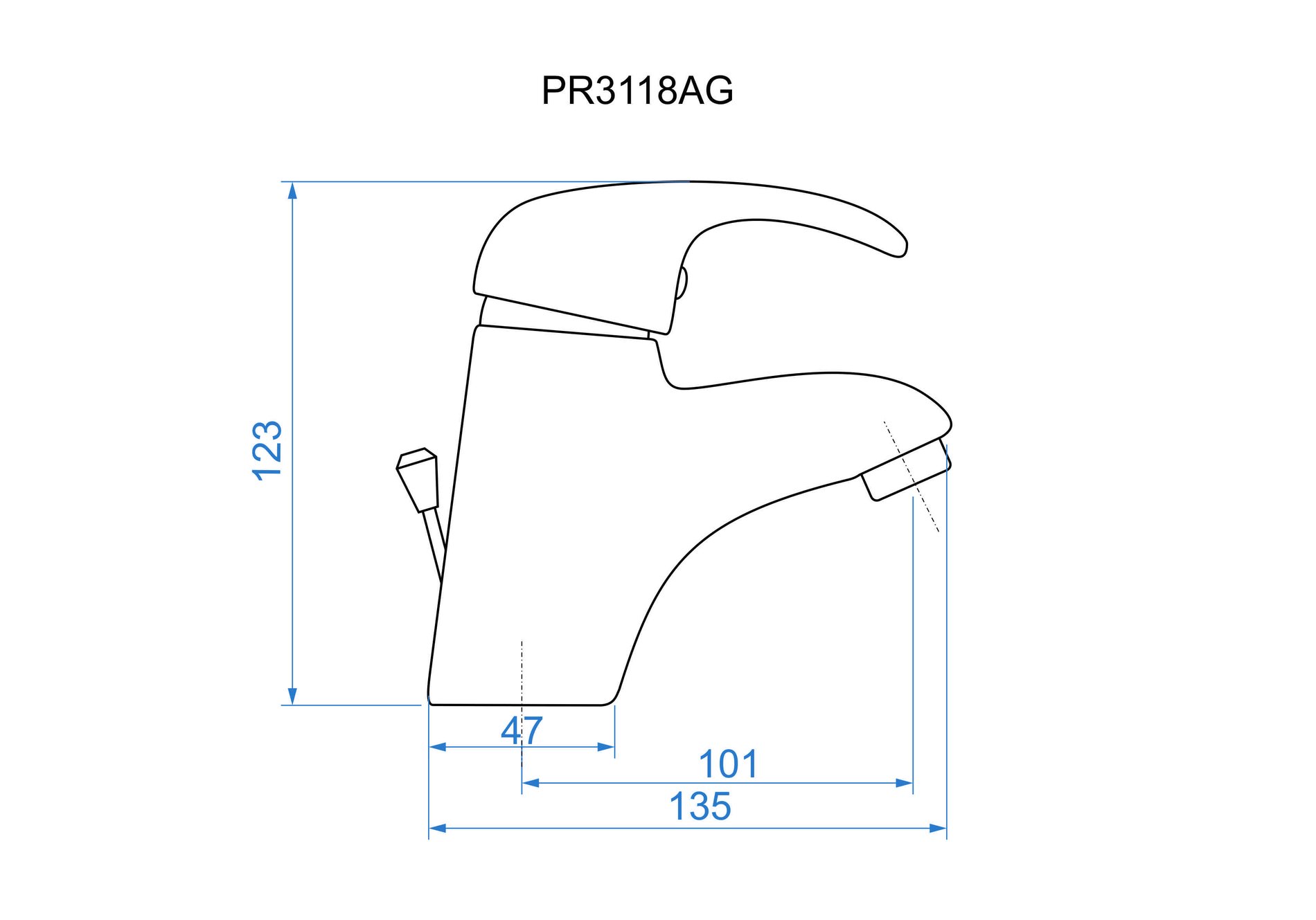 Umyvadlová stojánková baterie s uzávěrem sifonu, klik-klak, satén, PERLA