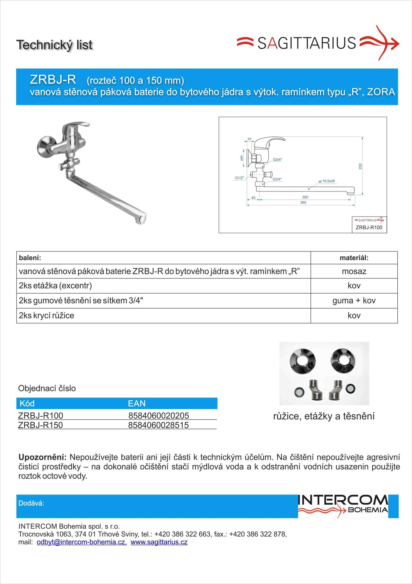Vanová baterie do bytového jádra ZORA s ramínkem „R“- rozteč 150 mm